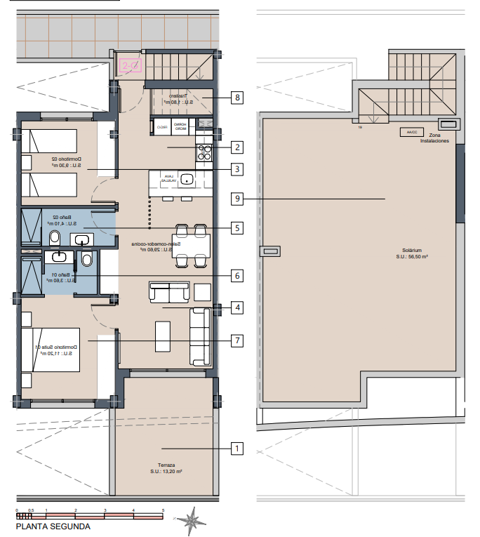 Wunderschönes Penthouse mit 57 m² großer Sonnenterrasse 2 Schlafzimmer, 2 Bäder.Diese fantastische Wohnung befindet sich in der Gegend Serena Golf in Los Alcázares. Etwa 10-25 Gehminuten zu den Stränden, der Altstadt, dem Golfplatz und dem Yachthafen.Die Wohnung besteht aus einem Wohnzimmer mit offener Küche und Zugang zur Terrasse über große Glasschiebetüren.Die Küche verfügt über eine schöne Frühstückstheke und ist mit Kochfeld und Dunstabzugshaube ausgestattet.2 schöne Schlafzimmer, beide mit Einbauschränken und Glastüren zur Terrasse. Das größere Schlafzimmer verfügt außerdem über ein eigenes Bad.Vom Eingang der Wohnung führt eine Treppe zum 57 m² großen privaten Solarium – fantastische Aussicht, sowohl auf den Gemeinschaftsbereich als auch auf das Mar Menor.Hauptmerkmale:- Riesiges Solarium.- Abstellraum.- Schöne Aussicht- Wärmepumpe, 110-Liter-Tank für Warmwasser.- Vorinstallation für Klimaanlage.- Einbauschränke.- Großer Gemeinschaftspool.- Küche mit Induktionskochfeld und Dunstabzugshaube.Und noch ein paar Angaben zu den Entfernungen:- Strände und Yachthafen ca. 1.600 Meter.- Stadt ca. 1400 Meter.- Golfplatz 800 m, 2 weitere in ca. 5 km Entfernung.- Supermarkt 1 km.- Nächstgelegenes Restaurant 200 m.- Padel-Tennis und andere Sportarten 650 m.- Flughäfen: Murcia 30 Minuten, Alicante 55 Minuten.- Cartagena 15 Minuten, Murcia-Stadt 35 Minuten, Torrevieja 40 Minuten.