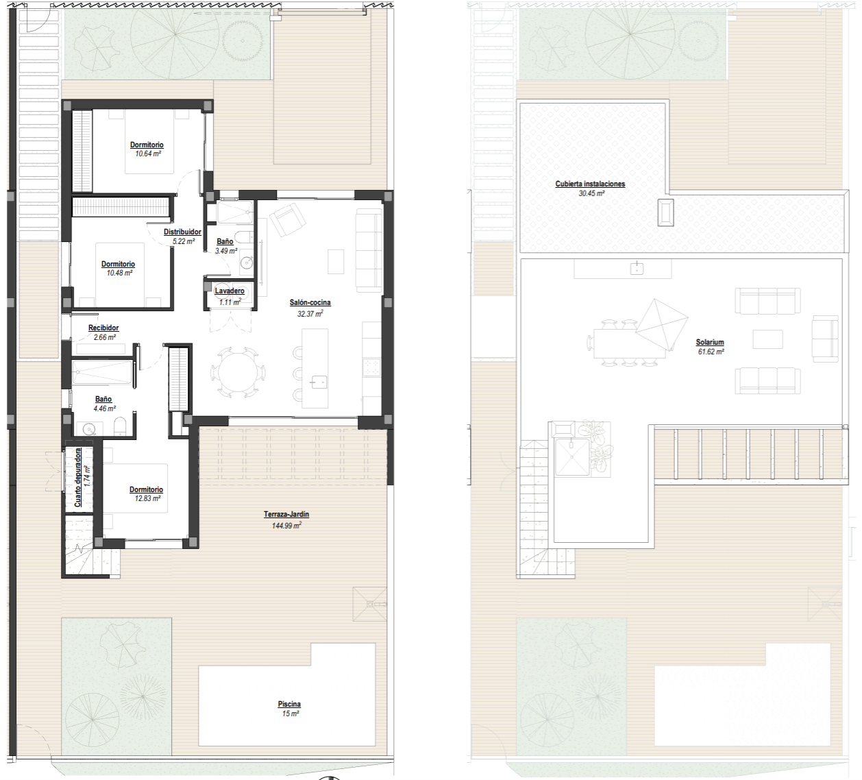 La Serena golf gebied is goed gelegen naast 18 holes golfbaan, op loopafstand van de stad, stranden, supermarkten, tennis en padel tennis enz. Dit is een fantastisch project. Een totaal van 38 woningen (24 appartementen en 14 villa's) in een gesloten ontwikkeling met ondergrondse parkeergarages / bergingen en gemeenschappelijk zwembad. Deze villa heeft een echt goede lay-out en is een van de weinige op het zuiden gelegen beschikbaar. Komt met 3 slaapkamers, 2 badkamers (1 en-suite), groot solarium en eigen zwembad inbegrepen in de prijs (voor een beperkte lancering periode). Alles in een verdieping. Mooie hal, woonkamer met open keuken - kreeg veel natuurlijk licht als ramen en glazen schuifdeuren naar 2 kanten. Geeft ook toegang tot zowel het op het zuiden gelegen deel met het zwembad en de tuin in het oosten. 3 slaapkamers, waarvan één met badkamer en toegang tot de tuin. Nog 2 slaapkamers van goed formaat en een tweede badkamer. Vanuit de tuin is er toegang tot het enorme solarium van 62 m2 met mogelijkheid voor zomerkeuken en douche. Ook toegang tot het gemeenschappelijke zwembadEen aantal belangrijke kenmerken:* Op het zuiden.* Groot 62 m2 solarium.* 3 slaapkamers (1 en-suite), 2 badkamers.* Prive zwembad (inbegrepen voor een beperkte periode - anders een optie)* Zeer lichte lounge* Keuken met alle in witgoed (beperkte lancering periode).* Ondergrondse parkeergarage en berging. Pre-installatie voor het opladen van elektrische auto's. * Ingebouwde kasten in de slaapkamers * Gemotoriseerde rolluiken in de slaapkamers * Pre-installatie voor airconditioning met kanaal * LED-strip verlichting in de woonkamer en slaapkamers. * Gemeenschappelijke zwembaden en gebieden. De ontwikkeling is slechts ca. 800 van strand en oude stad Los Alcazares, met heerlijke restaurants, bars, winkels, de jachthaven en de 4 km lange strandpromenade naar Los Narejos. Shopping/supermarked is minder dan 5 minuten lopen van de villa's. Padel- en tennisbanen op slechts 100 m afstand.Een beetje over afstanden:Golf: loopafstand - plus nog 2 in een straal van 5 km.Winkelcentrum, grote supermarkten - 5-10 min rijden.Airporten: Murcia 25-30 minn, Alicance 50-55 min. Steden: Cartagena 15 min., Murcia stad 35 min. Voor meer informatie of het regelen van bezichtigingen kunt u contact opnemen met ons gebied agent Steen op +34 621 208832 (Ook WhatsApp).