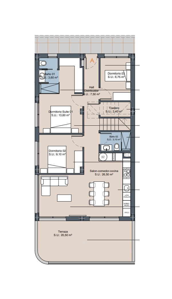 Op het zuiden gelegen appartement op de eerste verdieping met 71 m2 groot solarium en mooi terras. 3 slaapkamers, 2 badkamers, privé parkeerplaatsDit fantastische appartement ligt in de wijk Serena Golf in Los Alcazares. Ca. 15 minuten lopen naar de stranden, de “oude” stad, de golfbaan en de jachthaven.Appartement bestaat uit woonkamer met open keuken en toegang tot het terras op het zuiden via grote glazen schuifdeuren. Echt goed formaat (21 m2) terras op het zuiden De keuken is voorzien van kookplaat en afzuigkap.Vanuit de hal is een trap naar het grote solarium. Onder de trap is een opslagruimte. De trap is overdekt met do naar het eigenlijke solarium.3 slaapkamers, allemaal met inbouwkasten. De grootste heeft ook een en-suite badkamer.Belangrijkste kenmerken:- Op loopafstand van strand, stad, jachthaven en golf- 71 m2 solarium- Parkeerplaats- Op het zuiden- Warmtepomp, 110 l tank voor warm water- Pre-installatie voor airconditioning- Ingebouwde kasten- Groot gemeenschappelijk zwembad- Keuken met inductiekookplaat en afzuigkapAfstanden:- Stranden en jachthaven ca. 1.000 meter- Stad ca. 900 meter.- Golf 1.000 m, nog 2 in ca. 5 km.- Supermarkt 500 m.- Dichtstbijzijnde restaurant 200 m..- Padeltennis en andere sporten 150 m.- Vliegvelden: Murcia 30 minuten, Alicante 55 minuten.- Cartagena 15 minuten, Murcia Stad 35 minuten, Torrevieja 40 minuten.Voor meer informatie kunt u contact opnemen met Soraya@murciadreams.com