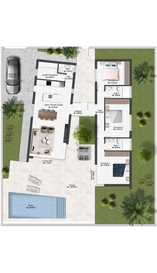 Met trots presenteren we deze prachtige villa's op Altaona Golf and Country Village Kersverse, zonnige huizen ontworpen met een levensstijl in het achterhoofd. Ze hebben 3 of 4 slaapkamers en 2 badkamers of 2 badkamers en een gastentoilet. * Ze zijn allemaal in een plan. * Ze liggen allemaal op het zuiden. * Tegels en keukenbladen etc. worden geleverd door Porcelanosa.* Ze hebben allemaal een privé zwembad van 18 m2 tot 25 m2.* Alle witgoed is inbegrepen.* Verwarmde vloeren in badkamers.* LED-verlichting in alle kamers.* Pre-installatie voor airconditioning.* Elektrische rolluiken in de slaapkamers* Parkeren op straat De kavelgroottes variëren van 325 m2 tot 609 m2.Er zijn 4 indelingsopties om uit te kiezen. Dit model heeft een briljante indeling, het is 3 slaapkamers, 2 badkamers, gastentoilet op een perceel van 330 m2. De grote keuken/eetkamer/woonkamer is 41 m2 en heeft grote glazen deuren naar de tuin/het zwembad. Ook veel glas en een glazen deur vanuit de keuken. Alle witgoed is aanwezig in de keuken. Vanuit de keuken is ook toegang tot de grote bijkeuken en het gastentoilet. De hoofdslaapkamer is 17 m2 en heeft veel kastruimte en een en-suite badkamer met dubbele wastafel en grote inloopdouche. De 2 andere slaapkamers hebben ook mooie afmetingen (12 en 14 m2) ook met goed formaat inbouwkasten - er is ook een 2e badkamer met dubbele wastafel en inloopdouche. Toegang tot de tuin vanuit de woonkamer en de slaapkamers - het verharde gedeelte (met het zwembad is 130 m2) het mooi gevormde zwembad is 20 m2. De verwachte bouwtijd is 10-12 maanden, de showvilla zou begin 2024 klaar moeten zijn. Aangezien deze ontwikkelaar al meer dan 30 jaar actief is, kunnen we andere showhuizen laten zien - reeds gebouwd, zodat je de kwaliteit en afwerking kunt zien. Altaona Golf and Country Village is centraal gelegen met gemakkelijke toegang tot het snelwegennet, dus vrijwel alles is binnen handbereik. Altaona Golf heeft een prachtige 18-holes golfbaan. Er is ook een heel mooi nieuw clubhuis met alle faciliteiten, waaronder een pro-shop, restaurant en bar. Het commerciële centrum heeft ook een restaurant en bar enz. Vliegvelden: Murcia International 8 min, Alicante 50 minSteden: Murcia stad 10 min, Cartagena 20 minStranden: Mar Menor 22 min, Middellandse Zee 25 min.Scholen: Internationale en lokale 10-15 minuten.Overig: Selectie van supermarkten 10 min, tal van restaurants 5-10 min. We willen je graag kennis laten maken met dit geweldige project en de al even prachtige omgeving. Voor meer informatie kunt u contact opnemen met Soraya op soraya@murciadreams.com