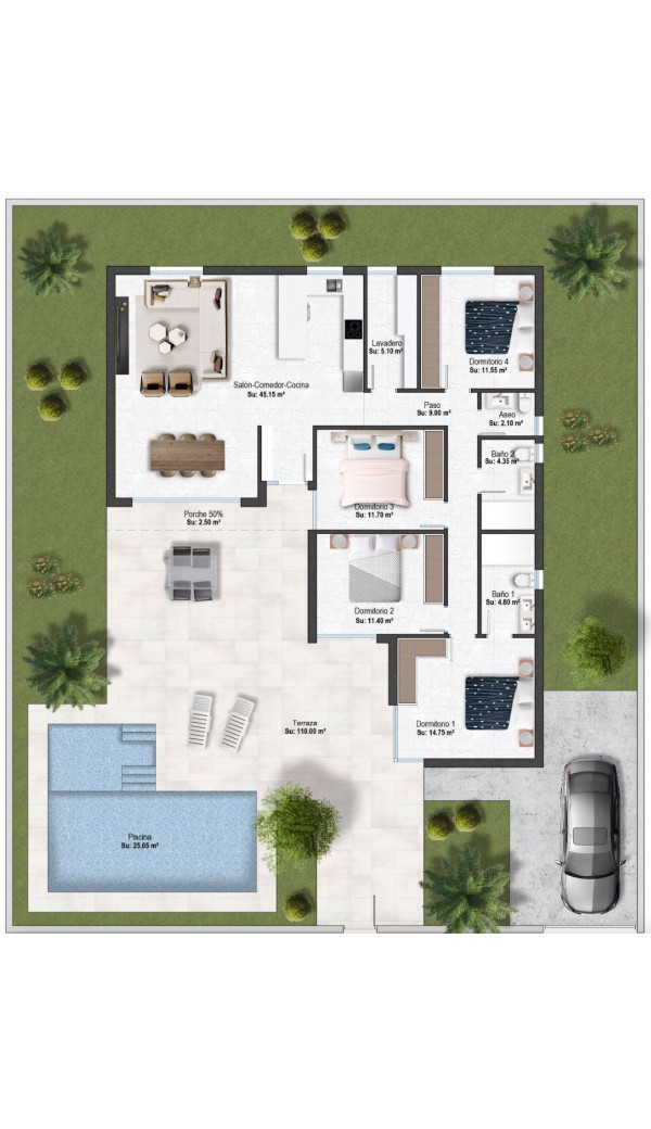 Met trots presenteren we deze prachtige villa's op Altaona Glf en Country Village. Kersverse, zonnige huizen ontworpen met een levensstijl in het achterhoofd. Ze hebben 3 of 4 slaapkamers en 2 badkamers of 2 badkamers en een gastentoilet. * Ze zijn allemaal in een plan. * Ze liggen allemaal op het zuiden. * Tegels en keukenbladen etc. worden geleverd door Porcelanosa. * Ze hebben allemaal een privé zwembad van 18 m2 tot 25 m2. * Alle witgoed is inbegrepen. * Elektrische rolluiken in de slaapkamers * Verwarmde vloeren in badkamers. * LED-verlichting in alle kamers. * Pre-installatie voor airconditioning. * off street parking. Kavelgroottes zijn van 325 m2 tot 609 m2. Dit model is de grootste met 4 slaapkamers, 2 badkamers en een apart gastentoilet op een perceel van 357 m2. De grote keuken/eetkamer/woonkamer is 45 m2 en heeft grote glazen deuren naar de tuin/het zwembad. Ook is er veel glas om het licht binnen te laten. Alle witgoed is inbegrepen in de keuken. Naast de keuken is de grote bijkeuken. De ouderslaapkamer is 15 m2 en heeft veel kastruimte en een en-suite badkamer met een grote inloopdouche. De 3 andere slaapkamers hebben ook mooie afmetingen (allemaal meer dan 11 m2) en hebben ook ruime inbouwkasten - er is ook een 2e badkamer met inloopdouche. Er is zelfs een gastentoilet. Er zijn glazen deuren naar de tuin vanuit de woonkamer en de slaapkamers - het verharde gedeelte (met het zwembad is 103 m2) het L-vormige zwembad is 25 m2. De verwachte bouwtijd is 10-12 maanden,Sommige interieurfoto's zijn van ontwikkelingen door dezelfde ontwikkelaar. Altaona Golf and Country Village is centraal gelegen met gemakkelijke toegang tot het snelwegennet, dus vrijwel alles is binnen handbereik. Altaona Golf is een geweldige 18-holes golfbaan. Er is ook een heel mooi nieuw clubhuis met alle faciliteiten, waaronder een pro-shop, restaurant en bar. Het commerciële centrum op het terrein heeft ook een restaurant en bar enz. De 300 jaar oude boerderij Parador moet eind 2025 klaar zijn met nog meer restaurants, bars en andere faciliteiten. Vliegvelden: Murcia International 8 min, Alicante 50 minSteden: Murcia stad 10 min, Cartagena 20 minStranden: Mar Menor 22 min, Middellandse Zee 25 min.Scholen: Internationale en lokale 10-15 minuten.Overig: Selectie van supermarkten 10 min, tal van restaurants 5-10 min. We willen je graag kennis laten maken met dit geweldige project en de al even prachtige omgeving. Voor meer informatie kunt u contact opnemen met Soraya op soraya@murciadreams.com