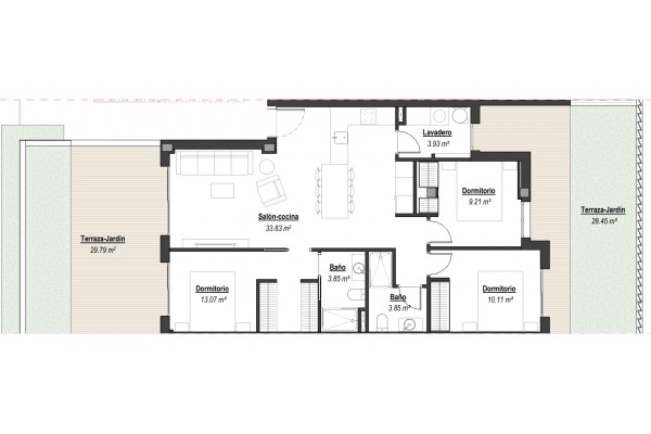 * Alle slaapkamers hebben directe toegang tot terrassen.