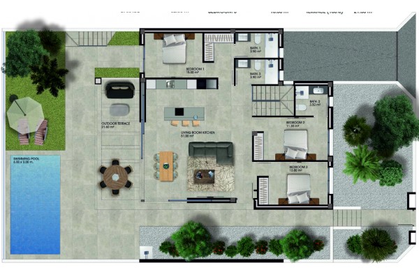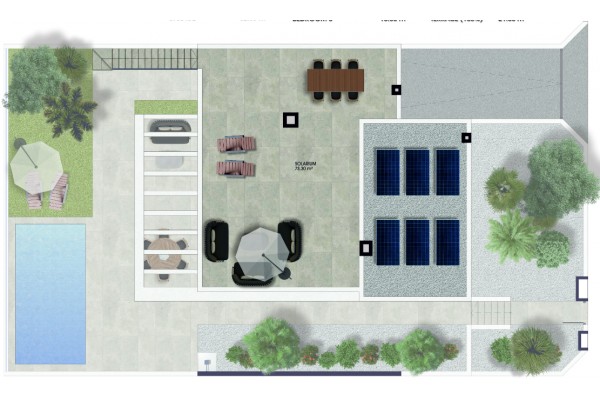 Ta willa ma fantastyczny układ. Nieczęsto widzimy wille z garażem i innymi pomieszczeniami w piwnicy: Posiada również duże solarium i prywatny basen.