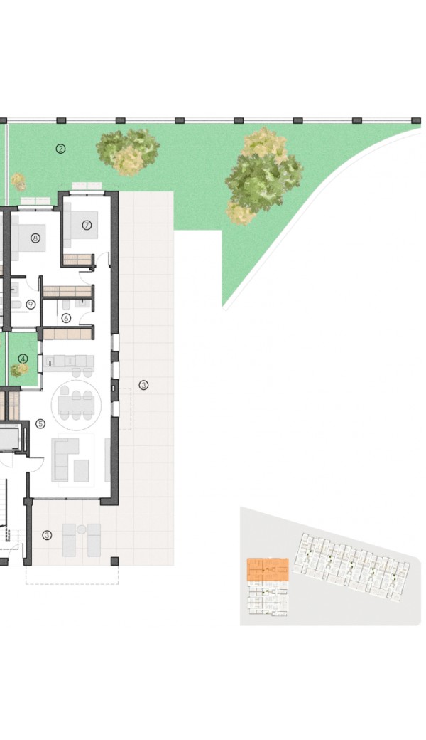 W fantastycznym kompleksie z zaledwie 30 apartamentami, 15 dwuosobowymi ogrodowymi i 15 trzyosobowymi na 2 piętrach - 7 z nich ma również solarium na górze.