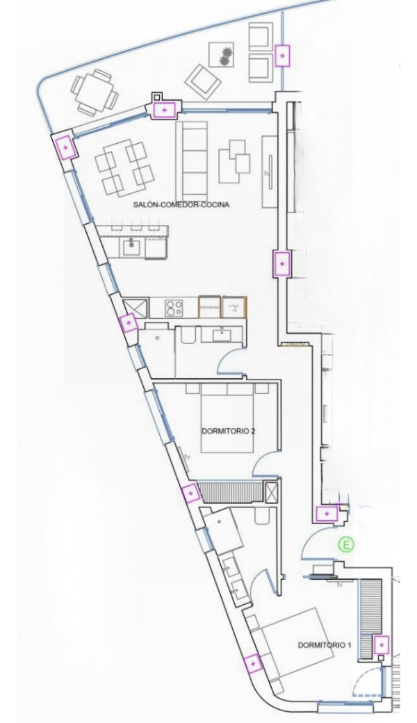 Ten jest na końcu budynku, więc bardzo jasne, jak wiele okien. Składa się z dużego salonu z otwartą kuchnią, 2 dużych sypialni z wbudowanymi szafami, z których główna ma łazienkę.