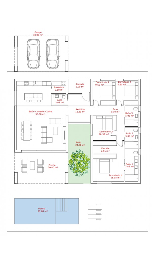 Attractive design villa in a fantastic localition overlooking the newly refurbished golf course of Hacienda del Alamo.Large 56 m2 lounge, 4 beds, 3 bath, guest toilet, large plot, large private pool, covered parking for 2 cars, laundry room. Ducted A/C and all white goods included. Fantastic Mediterranean style landscaped garden.We still cant believe it, but its actually true, a brand new development on a mature golf resort at prices we have seen 3 years ago and wont last long before rising. In a great location the developer has designed 4 bedroom villas on plots from 817 sqm with own pool and landscaped low maintenance gardens. Set in a privileged position and surrounded by the golf course the villa offers an ample salon with open plan kitchen with island, including all white goods. The master bedroom is equipped with a dressing area as well as the en suite bathroom, the 3 other bedrooms share 2 other bathrooms. All bathrooms are designed and equipped with attractive colour choices for floor and wall tiling with special effects and features. Fitted wardrobes, a/c by conduct, aerothermal hot water supply and preinstallations for EV charger and solar panels make the project a must to visit before deciding about any new build purchase in the Murcia Region.The delivery date is planned for autumn 2026.Summary:* Large plot* Covered parking for 2 cars.* Landscaped garden.* Private pool* Solarium* 4 bedrooms with build in wardrobes.* Master bedroom with en-suite bathroom and dressing area.* 3 bathrooms and guest bathroom* Off road parking.* Full equipped kitchen with all white goods included.* Ducted aircon (and heating).* Pre-installation for electric car charger and solar panels.* Gated resort with 24/7 security.* Aerothermal for hot water.* Several options available.And a bit about distances:Beaches: From 30 minutes (Mediterranean)Airports: Murcia 12 minutes. Alicante 70 min..Fuenta Alamo: 8 minutes.Murcia City: 35 minutesCartagena: 25 minutes, Hacienda del Alamo Golf Resort is a luxury resort in Murcia, Spain, known for its championship 18-hole golf course, designed by Dave Thomas which has recently been bought by the developer together with all other sport facilities on the resort. It offers a range of sports facilities, including tennis and paddle courts, and accommodations such as villas, apartments, and townhouses. The resort provides a tranquil, golf-focused lifestyle with access to the natural beauty of the surrounding area and major cities like Murcia and Cartagena and Murcia International Airport and nearby beaches. Fuente Alamo is a municipality in Spain's Region of Murcia known for its agricultural economy, its location near the Carrascoy National Park, and its pleasant climate making it a spot for rural tourism. The town has a history dating back to Roman times, with the current settlement forming in the 16th century. Nearby attractions include the beaches of the Costa Cálida and the city of Cartagena. For more information and to arrange a viewing of the resort and the development please contact Rupert Gehmacher, email rupert@murciadreams.com also on WhatsApp +34 619039182. For more information about developments in the Murcia Region please visit www.murciadreams.com