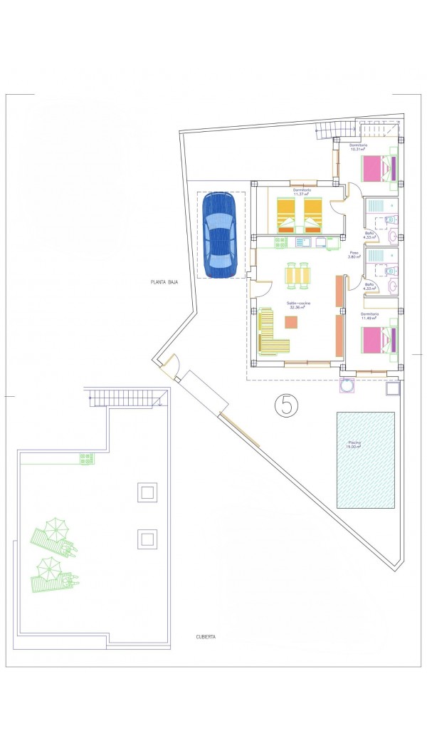 This new villa in well located medium size village, village got everything including transtation (railway line between Murcia City and the coastal city Cartagena). Several golf courses in a radius of 8-15 minutes. Beaches also only 15 min away. The detached villa has a parking space and a 15 m2 private pool in the garden. Indoor it consist of good size lounge with open kitchen (comes with all in appliances - including integrated fridge and dishwasher). the lounge has glass doors leading to the pool area. It has 3 bedroom and 2 bathrooms. All the bedrooms all comes with build-in wardrobes, the master one also got en-suite bathroom and direct access to the pool area. On the top of the villa is a massive 79 m2 solarium with summer kitchen - comes with a zink and prepared for washing machine and fridge. It comes with LED lights in and out. Pool comes with 2 spotlights and a shower. There is preinstallation for ducted aircon/heating A bit about distances: Train station - 3 min walk Shopping, bars, restaurants and supermarkeds are in walking distance. Beaches: Mar Menor 15 min., The Mediterranean 18 min.. Airports: Murcia International 20 min., Alicante 60 min Towns and City's: Roldan and San Javier both 8 min.. Murcia City 25 min.. Los Alcazares 15 min.. Golf: Plenty the nearest one (La Torre) approx 8 min.. For further info and viewings please contact Steen on +34 621 208832 (Also WhatsApp)