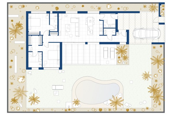From the entrance/hallway with the guest toilet, you walk in to the 41 m2 open kitchen lounge. the italien style kitchen comes with extractor and hub. From the kitchen is also access to the 6 m2 utility room.