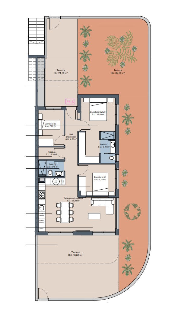 Fantastic 3 bed ground floor apartment with 129 m2 terraces. Close to golf and walkable distance to town and beach.