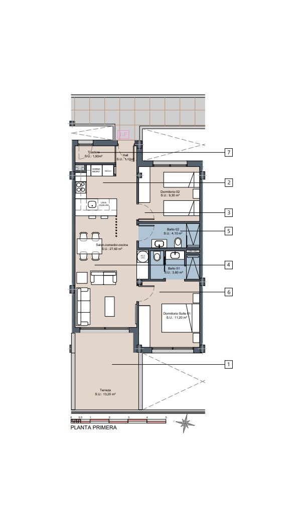 Apartment consist of lounge with open kitchen and access to the terrace via large sliding glass doors.