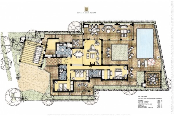 This is one of the larger Algaba villas, and one of the rare ones (1 out of 10) which has got west facing gardens and also first line to the golf course. It has been upgraded a lot , new pool, new fence and some walls, fully working on solar panels with battery storage. Large new garage with additional access from the large utility area. It consists of a large lounge, plenty of sunny areas, 3 bedrooms, one en-suite with walk-in wardrobe. One further bathroom and a separate guest toilet. Good size independent kitchen. Massive 75 m2 covered terrasse which has got nice new tiles that goes all the way in to the garden and the pool area. Big pool, approx. 36 m2. Marble floors inside. Large garage and off-street parking for several cars.Loads of solar panels to cover your electrical use, even got a battery to charge for not sunny days. Heating via central A/C with separate heaters in the bathrooms. Also a log burner in the lounge. This is a fabulous, large and very sunny west facing 3 bedroom, 2 ½ bathroom villa in the beautiful and sought after El Valle Golf Resort. The villa has been built in lovely Spanish style using only the best materials. The villa is in a cul-de-sac only a short walk (2-3 min) from the clubhouse with all its facilities (Restaurant/bar, supermarket). Tennis and padel tennis courts are only 2 min walk as well. At the front of the villa is the large new garage plus off-street parking. The lovely lounge has a nice open feeling with approx. 5 m to the ceilings and wooden beams. It has a build-in fireplace, loads of space for both dining and settee areas. 4 double glass doors give access to the nice large garden and pool area. A separate door leads to the massive 75 m2 covered terrace on the side of the villa. From the lounge is also door to the guest toilet and access to the bedrooms section. First door gives access to a good size bathroom covered in marble with sink, toilet and shower. Next to that is one of the 3 bedrooms, this one has a good size with plenty of room for a double bed and it comes with build in wardrobes. Next bedroom also has plenty of space and build in wardrobes, but on top of that also double glass doors to its own terrasse. Further down the hallway is the master bedroom section which consist of large bathroom with 2 sinks, toilet, bidet and a bath. Next to it is the good size walk in wardrobe followed by the big master bedroom, which got a nice airy feeling as high ceilings with wooden beams and 2 double glass doors to the garden/pool area – from the window there is also a brilliant view to the garden. The massive 75 m2 covered area on the side of the building, have so many opportunities. Plenty of room for dinning area, sitting area, pool table, table tennis, bar etc. Basically, whatever suits the owner. The pool is approx. 36 m2 and fairly new as the current owner have had it changed. El Valle Golf Resort consists of 369 luxury villas and 319 luxury flats built around an 18-hole Jack Nicklaus design golf course. This villa is in walking distance of the clubhouse, with its restaurant/bar, mini supermarket, golf shop, gym and other facilities. Owners have free access to the gym, tennis courts, paddle tennis courts, and several large community pools to enjoy, children playgrounds and discount on golf fees. The resort is 10-15 mins from the new Corvera International airport, 20-25 minutes to choices of beaches, Murcia city 20 mins. For more information or to arrange a viewing at this great property, please contact local area agent Steen, on + 34 621 208832 (Also WhatsApp). For Spanish and German clients please contact Rupert on +34 619 039182 (also WhatsApp).
