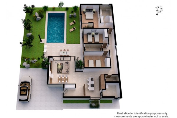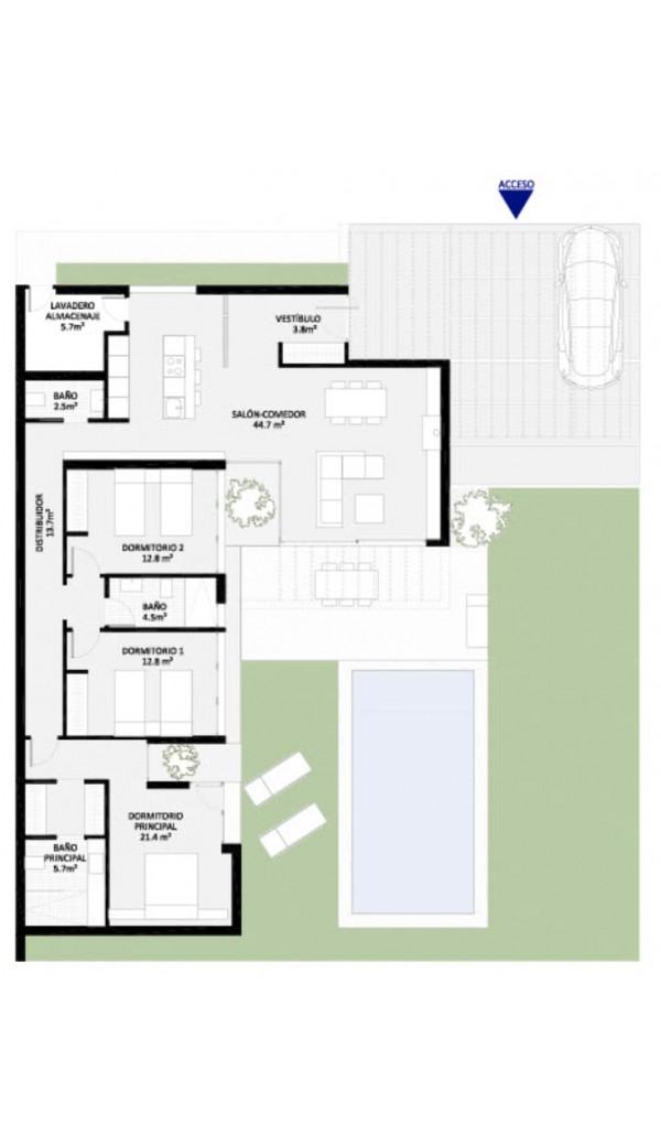 This is the 3 bed, 2 bathrooms and a guest toilet with nice size garden and 8 x 4 meter private pool.