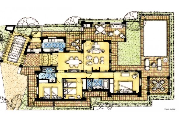 This is one of a fairly few villas which are west facing , front line golf with nice views (no wall in the back ground). It is in really good condition , Recently had new floors, kitchen and a few more upgrades like walk-in shower, wood burner etc.. The villa has been built in Spanish style using only the best materials. 5-6 meters to the ceiling. It has central heating, wood burner and ducted air-conditioning. The large lounge has the wow factor of the 5-6 meters high ceilings with wooden beams. The lounge has a fantastic view to the pool and the golf course and access to the pool area via 3 double glass doors. It also has access to the kitchen, which has been upgraded and the outdoor utility area is now part of the kitchen. From the kitchen is a door to a small outdoor court yard and the large covered terrace with high ceiling with wooden beams and a build in BBQ. The bedroom section consist of 3 good-sized double bedrooms, all with built-in wardrobes, sharing 2 bathrooms. The master bedroom features wooden beams and its own en-suite bathroom with double sinks and walk in shower. The master bedroom also have direct access to the pool area via double glass doors. The 2nd bedroom also has a good size walk-in shower. On one side of the villa is nicely build covered storage space for bi-cycles and wood for the wood burner. The garden comes with a 22 m2 swimming pool, and a 12 m2 pergola. Quarterly community fees are Euro 502.00 and yearly IIB (council tax) approx Euro 450 El Valle Golf Resort consists of 369 luxury villas and 319 luxury flats built around an 18-hole Jack Nicklaus design golf course. This villa is in walking distance of the clubhouse, with its restaurant/bar, mini supermarket, golf shop, gym and other facilities. Owners have free access to the gym, tennis courts, paddle tennis courts, and several large community pools to enjoy, children playgrounds and discount on golf fees. The resort is 10-15 mins from Murcia International airport, 20-25 minutes to choices of beaches, Murcia city 20 mins. For more information or to arrange a viewing at this great property, please contact resort agent Steen Greve on +34 621 208832 (also WhatsApp).