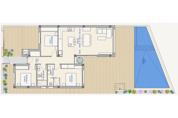 Fantastic frontline golf villa, with a large pool.PRICE INCLUDES FURNITURE, DUCTED AIRCON. AND ALL WHITE GOODS.It consist of 36 m2 open kitchen/lounge, 3 bedrooms and 2 bathrooms.From the 36 m2 kitchen/lunge is access to the large terrace and the beautiful 34 m2 pool.All 3 bedrooms got build in wardrobes, the master loads of them and also got a nice en-suite bathroom.Both the lounge and the master bedroom got glass doors to the terraces and the pool area.There are off road parking via motorised gates, including remote control.Summary:* Fully furnished.* Ducted Aircon/heating included.* All white good included.* Front line golf* Large private pool.* Video intercom.* Fantastic views.* Close to golf, town and beaches.* Master bedroom with en-suite bathroom.* Off street parking.The development is only approx 1500 m from beach and old town Los Alcazares, which lovely restaurants, bar, shops, marina and the 4 km long beach promenade to Los Narejos.A little bit about distances:Golf: walking distance - plus 2 more in 5 km radius.Shopping centre, big supermarkeds - 5-10 min drive.Airports: Murcia 25-30 minn, Alicance 50-55 min..Towns: Cartagena 15 min..,, Murcia City 35 min..