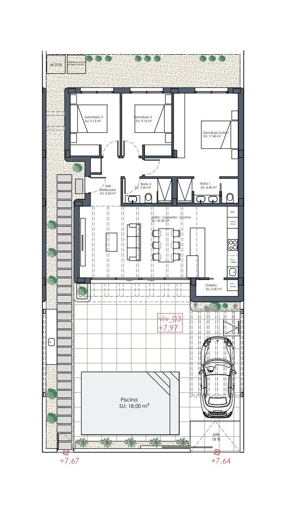 Well layout on plan villa with private pool, walking distance to supermarket, shops, restaurants and the beach. Only 5 min from 18 holes golf course.The villa got off road parking for 1 car.From the hallway you at one side got access to the bedroom section and on the other side the nice big and light lounge with open kitchen. Kitchen got a lovely breakfast bar and comes with hub and extractor. From the kitchen is also access to the utility room.The lounge area got whole wall of glass and glass doors with views and access to the 18 m2 pool and garden area.The bedroom sections got the 3 bedrooms and the 2 bathrooms. The largest one of them got en-suite bathroom. All 3 bedrooms got build-in wardrobes.There are pre-installation for ducted A/C and heating.Hot water comes from air to water heatpump - hot water tank is 110 l.The property is a very good location. Walking distance to "Old" Los Alcazares with its marine, beaches, restaurants and bars. Here starts the 4 km long beach promenade to the end of Los Narejos. Nearest shopping and restaurant is less than 5 min. walk. Baker and supermarket only 200 m from the house.Brilliant place for golfers as almost walking distance to Serena Golf and approx 5-10 min drive to Mar Menor Golf and Roda Golf.A bit about distances:Beach/Marina approx 800 m.Towns/Cities: Murcia 40 min., Cartagena 20 min., San Javier 10 min..Airports: Murcia 30 min., Alicante 55 min..Shopping Centre (Dos Mares) 12 min..For more information please contact Steen on +34 621 208832 (Also WhatsApp).