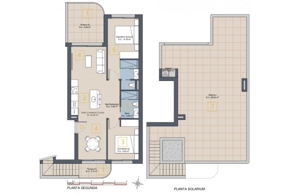 Lovely apartment with fantastic views, on one side the golf course and the pool and the other side the Mar Menor. Well layout apartment terraces and a massive (67 m2) solarium. Small community - nice south facing community pool. Private parking space and storage room in the basement. It consist of nice lounge with open kitchen. The lounge got a south facing terrace over looking the pool and the golf course. One the other side is also a small terrace with staircase to the massive private solarium on the roof. Kitchen got a lovely breakfast bar and comes with hub and extractor. The 2 bedroom both got build-in wardrobes and access to one of the terraces. The master one also got en-suite bathroom. Comes with allocated parking space and storage room in the basement.There are pre-installation for ducted A/C and heating.The property is a very good location. Not far from "Old" Los Alcazares with its marine, beaches, restaurants and bars. Here starts the 4 km long beach promenade to the end of Los Narejos. Brilliant place for golfers as almost walking distance to Serena Golf and approx 5-10 min drive to Mar Menor Golf and Roda Golf.A bit about distances:Beach/Marina approx 1900 m.Towns/Cities: Murcia 40 min., Cartagena 20 min., San Javier 10 min..Airports: Murcia 30 min., Alicante 55 min..Shopping Centre (Dos Mares) 15 min..For more information please contact Steen on +34 621 208832 (Also WhatsApp).