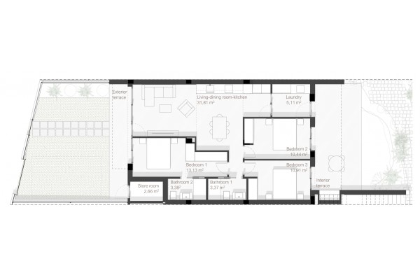 This lovely development consist of 3 bed, 2 bath apartments. Ground floor with gardens on both sides and penthouses with good size terrace plus massive solariums.They have a good size lounge/dining room with open kitchen. Kitchen comes with all white goods.All 3 bedrooms all got build in wardrobes and the master one got en-suite bathroom. Also a nice 2nd bathroom.Thos is a garden apartment, with gardens on both side of the apartment. So all 3 bedrooms got access to the gardens. I total approx 90 m2 of terraces and gardens.There are pre-installation for ducted A/C and heating.Key features:- on 18 holes golf course- 90 m2 of terraces and gardens.- Close to town and beaches.- 3 bedrooms with build in wardrobes- Solar panels for hot water.- Off road parking.- All white goods included.- Motorized shutters throughout.- Gym with lake views.- pre-installation for electric car charger on the development.Roda golf is a really nice 18 holes course, it got a nice big clubhouse with restaurant, bar, golf shop etc.. Roda town is just a walk away and got a selection of restaurants. Los Alcazares (with everything, including selection of beaches is in walkable distance and approx 5 min by car).And a bit about distances:Supermarkets, 3 in approx 5 min..by car/bi-cycle.Beach also approx 5 min, by car or bi-cycle.Shopping centre approx 10 min..San Javier 5-10 min..Cartagena 20 min..Murcia City 30-35 min.Airports: Murcia 25 min., Alicante 55 min..For more information please contact our area agent Steen Greve on +34 621 208832 (Also WhatsApp)