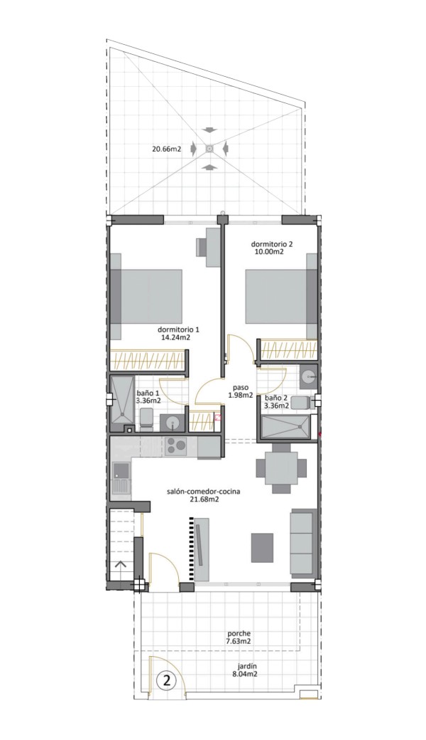Ground floor apartment with 2 bed, 2 bath close to town centre of San Pedro del Pinatar; Lo Pagan and only 750 m from the beaches.Terraces on both sides of the apartment.It consist of lounge with open kitchen which got access to the terrace.There are 2 bedrooms one of them with en-suite bathroom. Both got build-in wardrobes and access to the rear patio.There is a nice 2nd bathroom as well. - Kitchen comes with all appliances (even a washing machine). - A/C included. - Electric shutters - Internal and external LED lightning is included.Good size communal pool and off road allocated parking.A bit about distances:Town - walking distance to everything.Murcia City 35 minutesCartagena 25 minutes.Airports: Murcia 30 minutes and Alicante 50 minutes.Golf: loads in the area, 2 of them in 10-15 minutes drive.