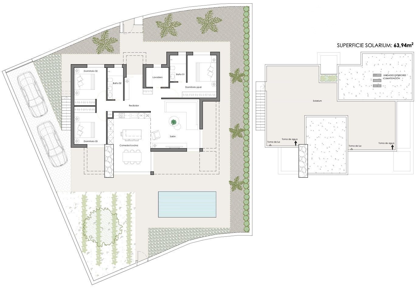 THE LATEST PROJECT ON HACIENDA DEL ALAMO: Villa MariaReserve your villa now to avoid disappointment!Villas Martina is an exclusive developemnt with generously sized plots of over 400 sqm of plot.All villas will come with pre- installation of air conditioning, spotlights and private poolThe L-shaped villas will be centeret around the private pool with shaded area and extra-large solarium on the roof and a large driveway with shades area for vehicle.The plots are a good size with plenty of space for a nice landscaped garden and to grow your own herbs and spices.HACIENDA DEL ALAMO: The number 1 place to be!As you enter Hacienda Del Alamo, you will notice immediately how well maintained the resort is, the main street being lined with beautifully shaped trees.So, why is Hacienda Del Alamo the number 1 place to be?There is plenty of life on the resort but it was designed to give people as much privacy as possible. The whole resort has a feeling of peace and tranquility.For those who like sport and recreation there are plenty of places to walk & there are cycle paths throughout the resort. There are tennis courts, padel courts the basketball Court, and an area for bowling and pétanque. There are lessons and clubs available. There are also various play areas for children on the resort.You will also find a sense of community on Hacienda Del Alamo for those who want it with exercise classes, quiz nights, bingo, an active ladies club and Golf Societies.The resort has an ever-extending range of bars and restaurants where you can choose many different types of food, whether it be a snack or full 3 course dinner. At the center of the resort, there is the Club House and The ONA hotel, with a great variety of different activities.There is an onsite shop which has everything you could need and then at just 5 minutes away you have a larger supermarket in the town of Fuente Alamo, and at 25 minutes away the cities of Cartagena and Murcia, where you can find everything, you want, as well as being wonderful places to explore. For those of you who like the beach, you have a great choice of beaches both on the Mar Menor and the Mediterranean, at just 25 minutes away. Hence HDA is well positioned for whatever you desire, whether living here permanently or spending holidays here.To appreciate this property, an extended viewing is highly recommended. Buying a property in Spain is a big decision but our team will guide you through the hurdles and make sure you have a safe and secure purchase process.