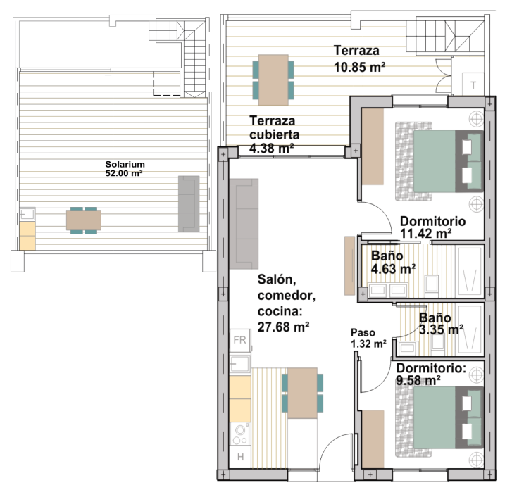 Really nice refreshing new development, 2 pools, gym, allocated parking and storage rooms. Well located walking distance to Supermarked, baker, bank, tobaconist, hairdresser, doctor, school, hairdresser, restaurants and bars. On top of that only 10 minutes from beaches, shopping centre, several golf course and only 5 minutes from Balsicas and San Javier. Even got a local wine producer close by (Bodega Madrid Romero). There are lifts to the upper floors and solar panels on the roof to provide power for the community facilities. The development consist of 2 and 3 bed apartments with 2 bathrooms. There are garden ones, some on first floor and on the top the penthouses with a solarium on the roof.This is a 2 bedroom, 2 bathroom penthouse with a 53 m2 solarium on the top.It has a 28 m2 lounge with open kitchen, nice kitchen bar/dining arrangement. It comes with all white goods. From the lounge is access to 11 m2 terrrace with stairs to the solarium - nice views to the communal pools and community areas. 2 bedrooms with build in wardrobes, the master one got en-suite bathroom and direct access to the terrace.Summary:* Nice community with 2 pools and gym.* Good location.* Storage room.* Allocated parking.* Walking distance to supermarket, bank, baker, restaurants and bars.* En-suite bathroom.* Bedrooms with wardrobes.* All kitchen appliances included.* Pre-installation for ducted A/C.And a bit about distances:* Supermarket 100 m.* Golf, several in a 15 km radius.* San Javier and Balsicas 5 km.* Beaches 9 km.* Airports: Murcia 20 min., Alicante 55 min..* Murcia City and Cartagena both 30 minutes.* Shopping centre 15 minutes.* Hospital 5 minutes.For more information or arrange a viewing please contact Steen on + 34 621 208832 (Also WhatsApp) , for German and Spanish please contact Rupert on + 34 619 039182 (Also WhatsApp)