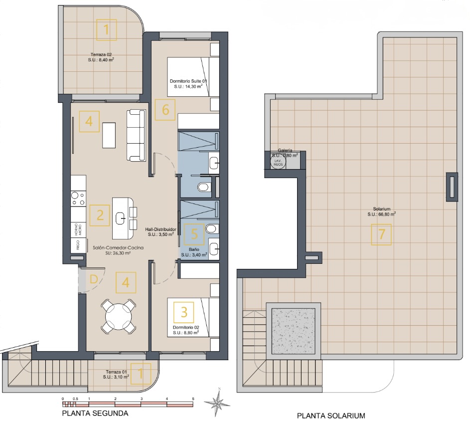 Lovely apartment with fantastic views, on one side the golf course and the pool and the other side the Mar Menor. Well layout apartment terraces and a massive (67 m2) solarium. Small community - nice south facing community pool. Private parking space and storage room in the basement. It consist of nice lounge with open kitchen. The lounge got a south facing terrace over looking the pool and the golf course. One the other side is also a small terrace with staircase to the massive private solarium on the roof. Kitchen got a lovely breakfast bar and comes with hub and extractor. The 2 bedroom both got build-in wardrobes and access to one of the terraces. The master one also got en-suite bathroom. Comes with allocated parking space and storage room in the basement.There are pre-installation for ducted A/C and heating.The property is a very good location. Not far from "Old" Los Alcazares with its marine, beaches, restaurants and bars. Here starts the 4 km long beach promenade to the end of Los Narejos. Brilliant place for golfers as almost walking distance to Serena Golf and approx 5-10 min drive to Mar Menor Golf and Roda Golf.A bit about distances:Beach/Marina approx 1900 m.Towns/Cities: Murcia 40 min., Cartagena 20 min., San Javier 10 min..Airports: Murcia 30 min., Alicante 55 min..Shopping Centre (Dos Mares) 15 min..For more information please contact Steen on +34 621 208832 (Also WhatsApp).