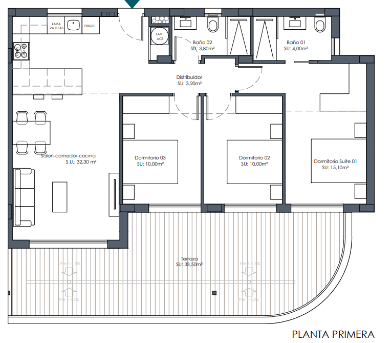 Fantastic development in walking distance to beach and town. Next to golf course. Really nice big communal area with a large pool.Really good views. This is a 3 bed version which got 2 bathrooms and a 34 m2 terrrace. Lounge with open kitchen. Access via glass doors to the 34 m2 terrace with fantastic views.all bedrooms got build in wardrobes and direct access to the terrace, the master one got also en-suite bathroom.Both bathrooms got good size walk-in showers.There are pre-installations for ducted A/C (and heating).Each apartment go it own parking space in the underground carpark. Summary:* Walking distance to beach, town and golf.* Fantastic communal area with large pool* 3 bed, 2 bath.* Bedrooms with build in wardrobes and direct access to the terrace.* Master bedroom with en-suite bathroom and direct access to the terrace.* Kitchen comes with hub and extractor.* Underground parking.* Pre-installation for ducted A/C.The development is only approx 15 - 20 min walk from the beaches and old town Los Alcazares, which lovely restaurants, bar, shows, marina and the 4 km long beach promenade to Los Narejos.A little bit about distances:Golf: walking distance - plus 2 more in 5 km radius.Supermarket, 5 minutes walk.Shopping centre, big supermarkeds - 5-10 min drive.Airports: Murcia 25-30 minn, Alicance 50-55 min..Towns: Cartagena 15 min..,, Murcia City 35 min..For more details or arranging of viewing of development and area, please contact Steen on +34 621 208832 (Also WhatsApp)