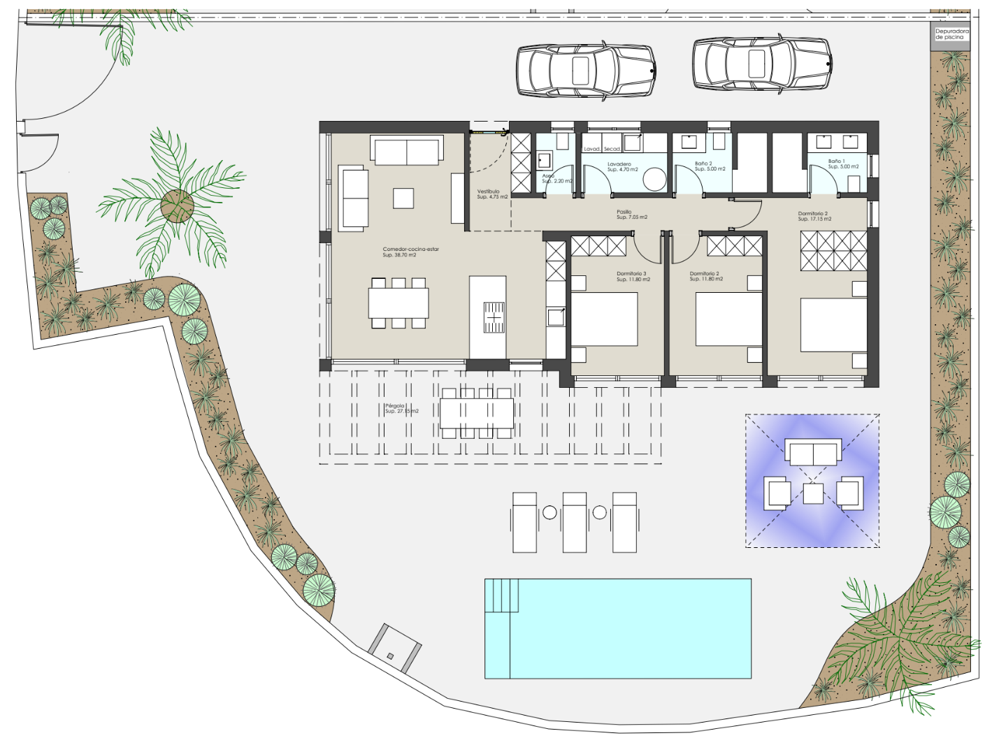 Amazing villa in the very sort after Cabo de Palos. Lovely beaches and a very nice marina with loads of really good restaurants. Close to the 3 fantastic golf courses at La Manga Club.The villa will be on a nice 522 m2 corner plot in a quiet residential area. There are parking space for several cars on the plot which are gated toward the road.From the hall way (with build in wardrobes) you have direct access to the lounge with open kitchen, the guest toilet and and the hallway going to the bedrooms section.Nice big lounge with plenty of space for both dining and sete area. Also got a nice breakfast bar. Loads of light and view to garden and pool area. Kitchen comes with all appliances. Several sliding glass doors to access the south facing garden.To the left in the hallway is the guest toilet, the utility room, the 3 bedrooms and the 2 bathrooms. Good size bedrooms, all with build-in wardrobes and access to the garden via sliding glass doors. The master one is 17 m2, got extra wardrobes and en-suite bathroom.The garden comes with 8 m x 3 m pool and plenty of the space for sunbeds and dinning and sete areas.At the end of the building is the staicase to the massive 68 m2 solarium.House comes fitted with ducted aircon., for cooling and heating.Some key features:* Attractive location* 68 m2 solarium* 8 x 3 m private pool.* Space for several cars on the plot.* 3 bedrooms, master one with en-suite bathroom.* All bedrooms got build-in wardrobes.* 2 bathrooms and a guest toilet.* Ducted A/S for cooling and heating.* Kitchen comes with all white goods.* Laundry/utility/storage room.And a bit about distances:* Golf, 3 in less than 10 minutes drive.* Supermarket, 400 m.* Restaurants from 350 m. so less than 5 minutes walk.* Marina 850 m, so approx 10 min walk.* Beaches approx 1,000 m, 15 min walk.* Airports, Murcia 35 minutes and Alicante 1 hour and 15 minutes drive.* Cartagena 20 minutes.* Los Alcazares 25 minutes.* Murcia city 40 minutes.For more information please do not hesitate to contact us, either via email or our area agent Steen on +34 621 208 832 (also WhatsApp)