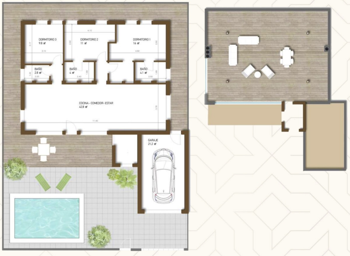 Maybe the best hidden secret in the Region of Murcia now available at an incredible price. 3 bedroom villa with pool & sun terrace starting from € 379.845 is really the best offer we can bring to you. The concept of this project is very residential with many amenities on your doorstep like medical centre, vet & farmacy, only 10 mins drive to a good stocked supermarket in the nearby Camposol resort, several golf courses within 30 mins drive and the beaches of Mazarron Port waiting for you to be explored. The Windmill is a gated comunity with 24/7 security service located in the hillside of Fuente Alamo with breathtaking views over the lush countryside but still close to all you will need for your place in the sun. So far there are some 40 villas sold already of 172 properties in the first fase and construction has started already we would be happy to accompany you to a no obligation visit and see with your own eyes to building quality and finish to a high standard.