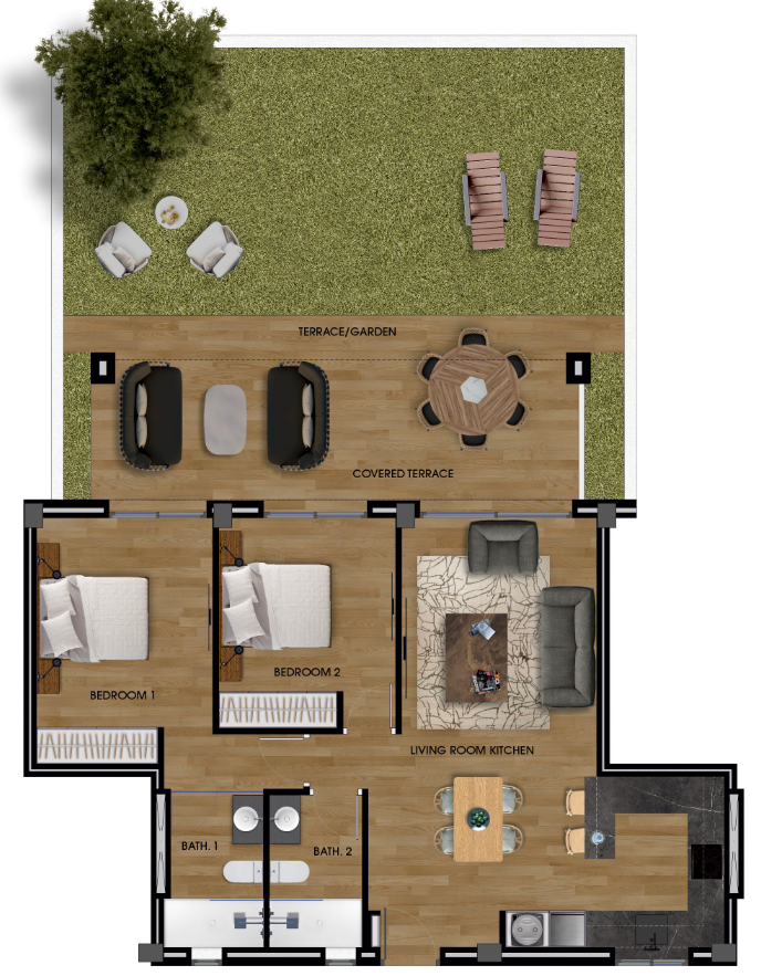 Lovely garden apartment with west facing terrace and garden. 2 bed, 2 bath apartment. Walking distance to golf course, the beaches and Old town of Los Alcazares.The apartment consist of lounge with open kitchen, sliding doors to the 18 m2 west facing terrace and the 50 m2 garden. The 2 bedrooms both got sliding doors to the terrrace/garden and have build-in wardrobes. The largest bedroom has en-suite bathroom.The complex will have 244 apartment with a lot of communal facilities like large pool, and some of the blocks will also have padel court, out door gym and playground.There are pre-installations for ducted A/C (and heating).Each apartment go it own parking space and storage room in the underground carpark. The development is only approx 15 min walk from the beaches and old town Los Alcazares, which lovely restaurants, bar, shows, marina and the 4 km long beach promenade to Los Narejos.A little bit about distances:Golf: walking distance - plus 2 more in 5 km radius.Shopping centre, big supermarkeds - 5-10 min drive.Airports: Murcia 25-30 minn, Alicance 50-55 min..Towns: Cartagena 15 min..,, Murcia City 35 min..For more details or arranging of viewing of development and area, please contact Steen on +34 621 208832 (Also WhatsApp)